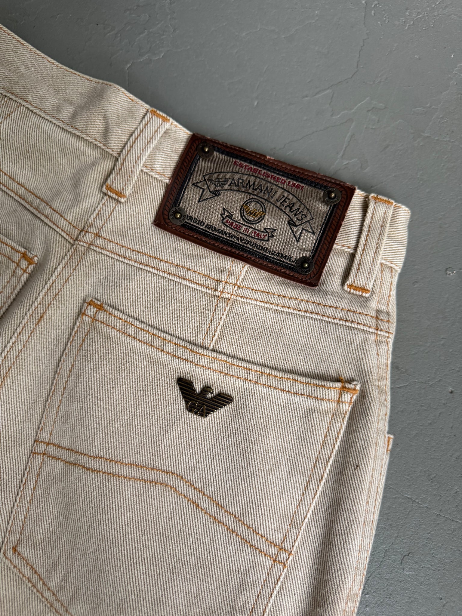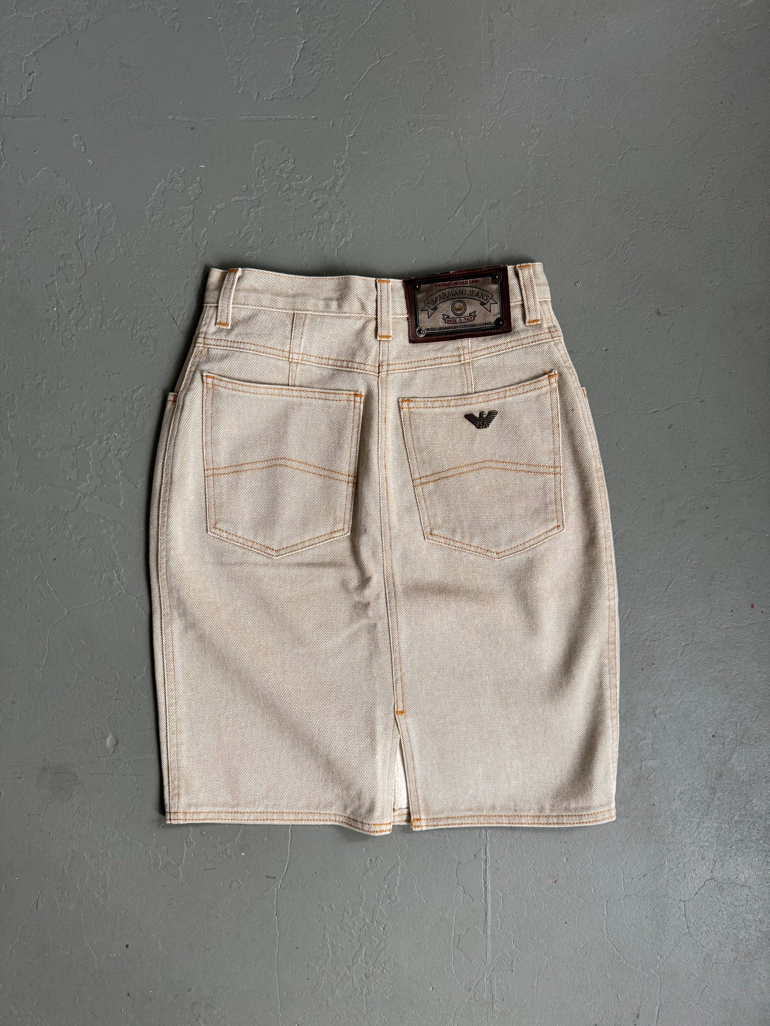 1980s Armani jeans denim skirt beige